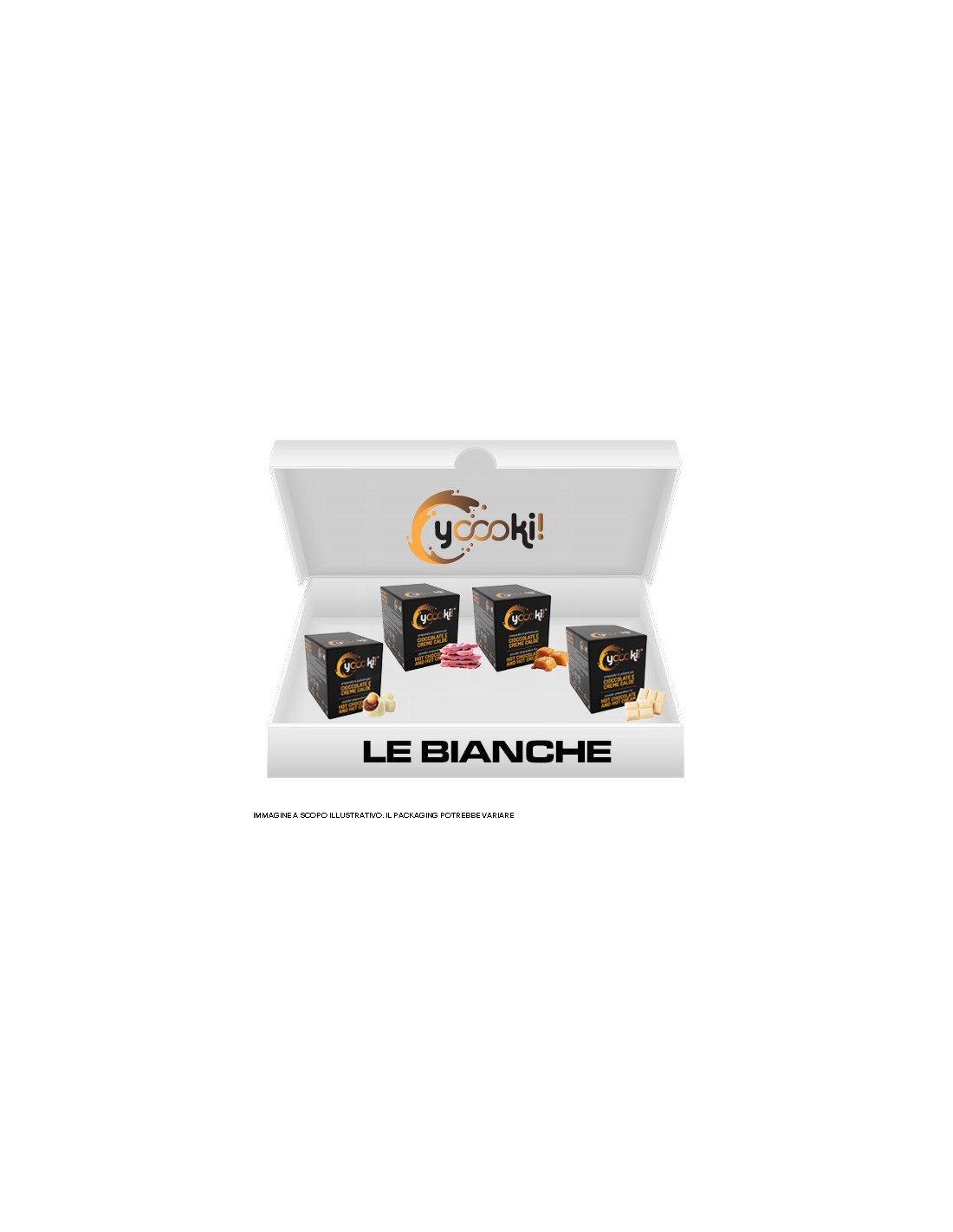 Ingredienti gusto "Bacio Bianco": Zucchero, amido di mais, burro di cacao (8,4%), latte in polvere, aromi, addensante: E412, sale, coloranti: annatto-curcumina, antiagglomerante:E551. Potrebbe contenere tracce di: uova.
