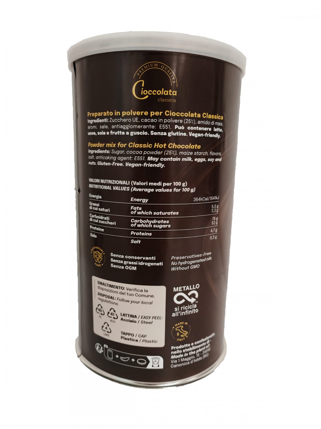 Perfetta da preparare con il latte caldo per una bevanda tradizionale e avvolgente, oppure da utilizzare come base per altre preparazioni golose. Ogni cucchiaino è una promessa di dolcezza e cremosità, che ti coccolerà con il suo gusto inconfondibile. Con il contenuto del barattolo (1 kg) otterrai circa 33 tazze di cioccolata calda!