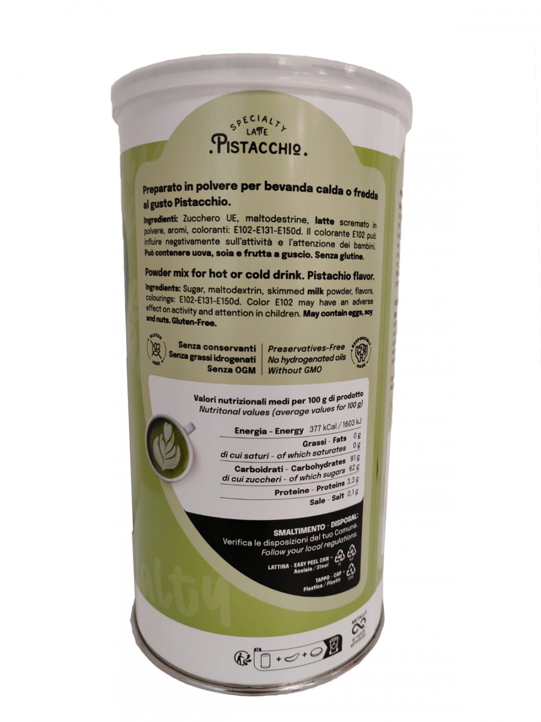 Preparato in polvere per bevanda calda o fredda al gusto Pistacchio